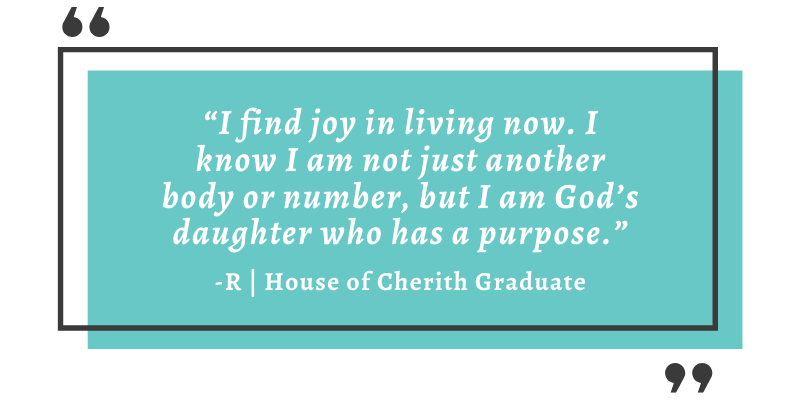I find joy in living now. I know I am not just another body or number, but I am God’s daughter who has a purpose.”